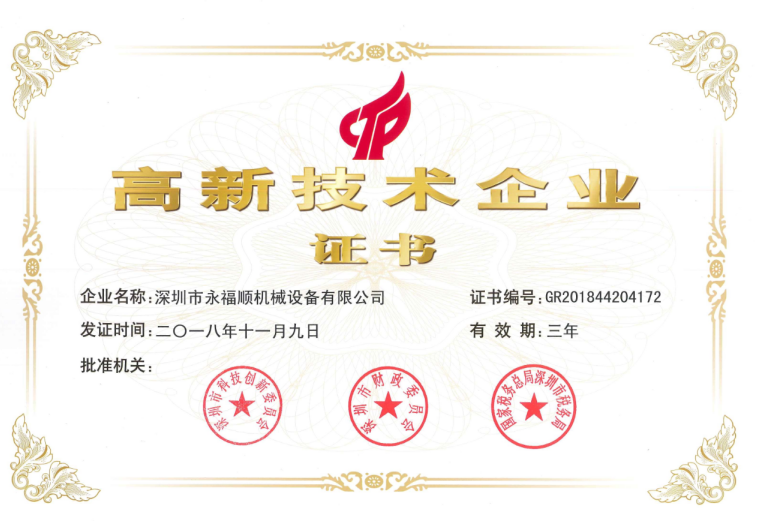 国家级高新技术企业,不仅是一种荣誉,更是一种动力。这一荣誉的获得,既是对永福顺机械科研能力和整体技术水平的肯定和认可,也是对公司科研创新工作的一种激励和鞭策!