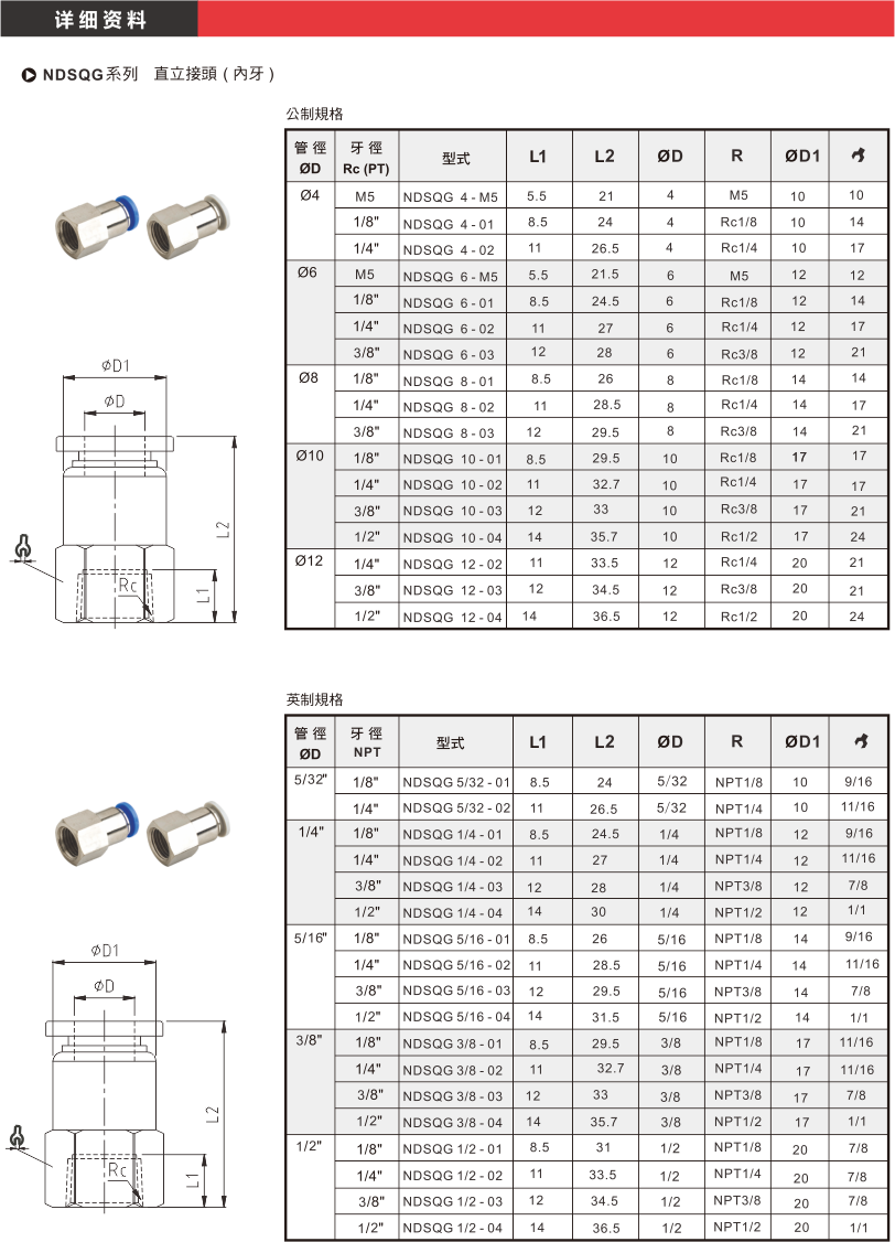 产品名称:NDSQG系列 直立接头 (内牙)